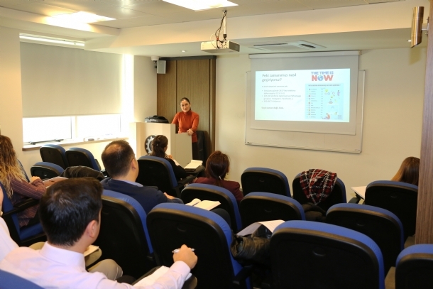 Eğitimin devamında sunum yapmak için kullanılacak programlar, sunumda kullanılması gereken renkler, puntolar ve fontlar hakkında katılımcılara bilgi verildi.