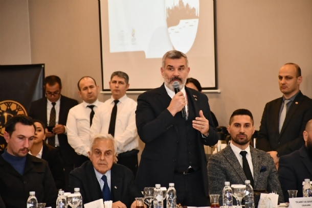 Gerçekleşen konuşmaların ardından söz alan Yönetim Kurulu Başkanımız Sayın Ahmet Çetin, bölgemizin geleceği için 30 yıllık makro planların yapılması gerektiğini dile getirdi. Başkanımız Çetin, "Tekirdağ, sanayi ve tarımın alanında birçok isteğimize cevap verebilecek bereketli topraklara sahip. Bölgemizde, ülkemize ve Türkiye Yüzyılı vizyonuna değer katacak büyük ölçekli planlar oluşturmanın tam zamanıdır. Bu planlar tüm yerel yönetimlerin, OSB'lerin, STK'ların birlikte hareketi ve sık sık dile getirmesi ile hayata geçirilebilir. Eğer makro planlar yapılmaz ise değişim ve gelişime ayak uyduramayarak bir gerileme dönemine gireriz. Yeraltı su kaynaklarının azalıyor olması da yakın gelecekte bölgemizi büyük sorunlar ile karşı karşıya bırakabilir. Meriç Nehri’nden Ege’ye dökülen, yıllık 5 milyar metreküp suyun, Türk tarafına düşen 2,5 milyar metreküpünün Trakya’daki çeşitli çukur alanlara taşınarak, faydalanılması hayati önemini taşıyor. Şu an için maliyetli bir yöntem olarak gözükse bile, yeraltı su kaynaklarının erimesinin doğuracağı sonuçlar bu maliyetten kat ve kat fazla olacaktır. Tarım, ticaret ve sanayi alanında bulunduğumuz konumdan daha da iyi bir konuma ulaşabilmek bizim elimizde. Her zaman daha da yukarıyı hedefleyen, bölgemiz ve ülkemizin ekonomisine değer katabilecek plan ve projeler ile Türkiye Yüzyılı vizyonuna yakışan başarılara imza atacağız inşallah. Bir diğer önemli konu ise S plakalar. Günden güne büyüyen sanayimizde S plakalar ile ilgili de sorunlar var. Bu sorunlar sanayicimize de yük olarak dönmektedir. S plaka sayılarının arttırılması ve bu konunun da ivedilikle çözülmesi gerekiyor. Harici durumlar maddi artışları devamında getiriyor. Sözlerime son verirken bizleri burada dinleyen ve desteklerini esirgemeyen Valimiz Sayın Aziz Yıldırım'a, Aile ve Sosyal Hizmetler Bakan Yardımcısı Sayın İsmail Ergüneş'e, Cumhurbaşkanı Başdanışmanı Sayın Ahmet Selim Köroğlu'na, Cumhurbaşkanı Danışmanı ve Sivil Dayanışma Platformu Başkanı Sayın Ayhan Ogan'a ve kurumlarımızın değerli temsilcilerine teşekkürlerimi iletiyorum." ifadelerini kullandı.
