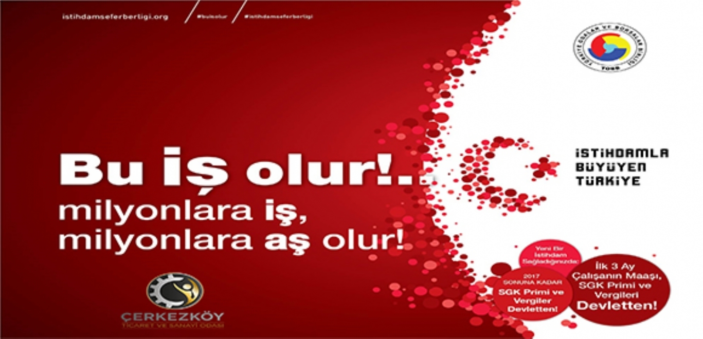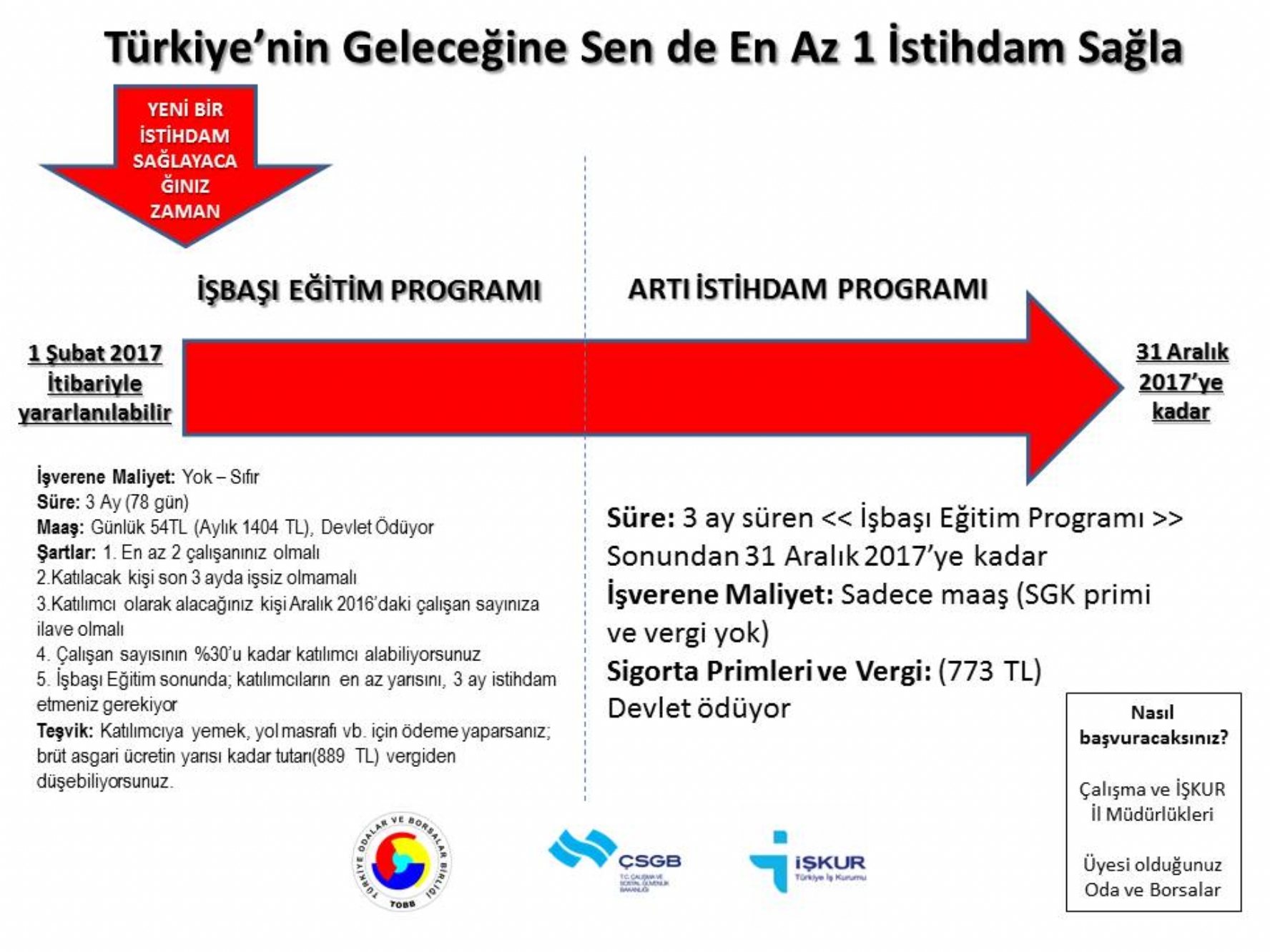Çalışma ve Sosyal Güvenlik Bakanlığı ile Türkiye Odalar ve Borsalar Birliği (TOBB) iş dünyasına yeni fırsatlar sunmaktadır. Yeni istihdam olanaklarına imkan sağlayan "Çalışma Hayatında Milli Seferberlik" İşbaşı Eğitim Programı kapsamında hayata geçirilmektedir.
