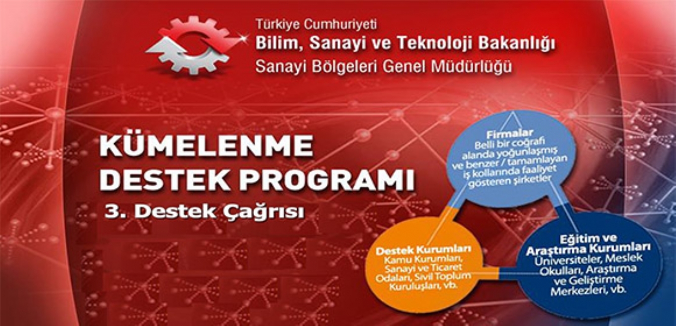 İlgi kayıtlı yazıda, Bilim Sanayi ve Teknoloji Bakanlığınca yürütülmekte olan Kümelenme Destek Programı 3. Başvuru Çağrısı 30/05/2017 tarihinde açılmış olup, 11/08/2017 tarihinde sonlanacağı bildirilmiştir. Başvurular https://kumelenme.sanayi.gov.tr web adresinden e-devlet şifresi ile gerçekleştirilmektedir. Başvuru rehberine, https://kumelenme.sanayi.gov.tr/Dokumanlar.aspx web adresinden ulaşılabilmektedir.