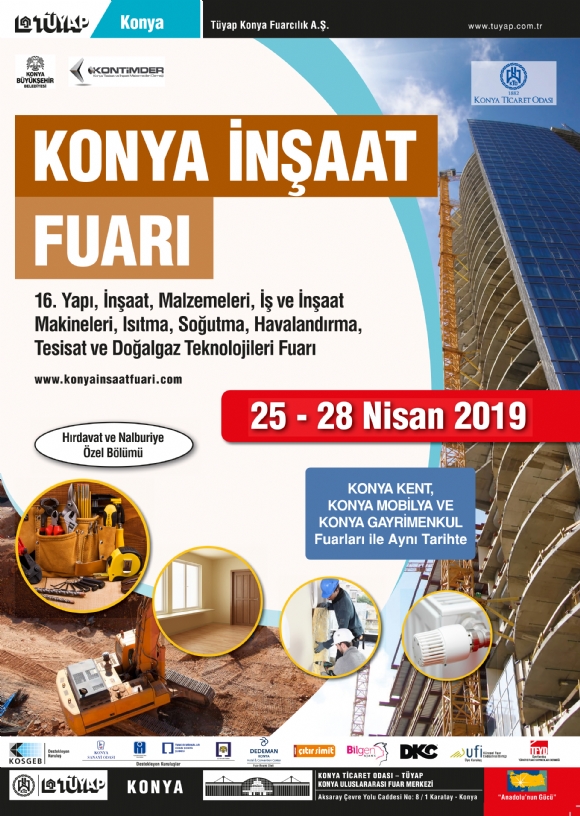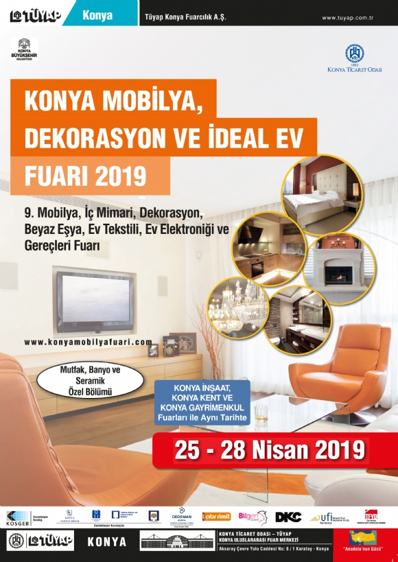 Konya Tüyap Fuar Merkezi’nde; Konya İnşaat Fuarı, Konya Mobilya, Dekorasyon ve İdeal Ev Fuarı 2019, Konya Gayrimenkul Fuarı bu yıl eş zamanlı olarak gerçekleştirilecektir.