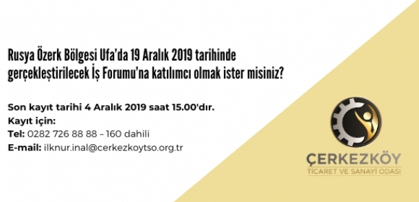 Rusya Özerk Bölgesi Ufa’da 19 Aralık 2019 tarihinde gerçekleştirilecek İş Forumu’na katılımcı olmak ister misiniz?