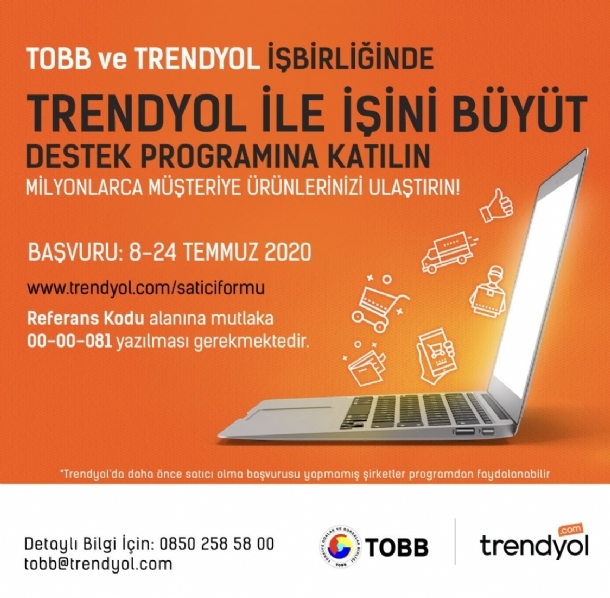 TOBB ve Trendyol “Trendyol ile İşini Büyüt” KOBİ Destek Programı’nı başlattı. Ürünlerinizi Trendyol’da milyonlarca müşteriye ulaştırmanızı sağlayacak destek programıyla ilgili bilmeniz ve başvurmak için yapmanız gerekenleri aşağıda bulabilirsiniz.