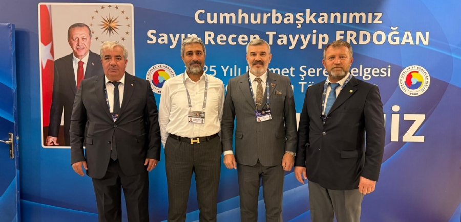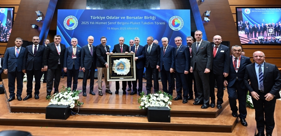 Türkiye Odalar ve Borsalar Birliği (TOBB) 2025 Yılı Hizmet Şeref Belgesi ve Plaket Takdim Töreni, TOBB Başkanı M. Rifat Hisarcıklıoğlu’nun ev sahipliğinde; Cumhurbaşkanı Recep Tayyip Erdoğan, Ticaret Bakanı Ömer Bolat, Adalet Bakanı Yılmaz Tunç ile Sanayi ve Teknoloji Bakanı Mehmet Fatih Kacır’ın katılımıyla TOBB İkiz Kuleler’de gerçekleştirildi.Türkiye Odalar ve Borsalar Birliği Delegesi olarak Birlik çatısı altında 10. 20. ve 30. yılını tamamlayanlara verilen plaket törenine Odamız Yönetim Kurulu Başkanı Ahmet Çetin ve Meclis Başkanımız Hacı Mehmet Erdoğan da törene katılım sağladı.İş dünyasının sorunlarını ve beklentilerini dile getirildiği törende, Başkanımız Ahmet Çetin, gerçekleştirdiği bire bir görüşmelerde bölgemizin ve üyelerimizin taleplerini de aktardı.