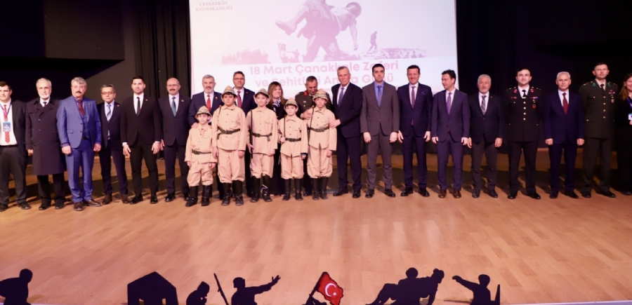 Çerkezköy Kaymakamlığımızın öncülüğünde, 18 Mart Çanakkale Zaferi ve Şehitleri Anma Günü dolayısıyla bir program düzenlendi. Çerkezköy Şehitliği’nde başlayan ve Atatürk Kültür Merkezi’nde devam eden programa; Çerkezköy Kaymakamı Sayın Nazmi Günlü, Çerkezköy Belediye Başkanı Sayın Vahap Akay, Cumhuriyet Başsavcısı Sayın Cihat Yılmaz, Tugay Komutanı Tuğgeneral Sayın Erkan Bulut, Yönetim Kurulu Başkanımız Sayın Ahmet Çetin, ilçe protokol üyeleri, siyasi parti temsilcileri, öğretmenler ve öğrenciler katılım sağlamıştır. Şehitlikte gerçekleştirilen törende; Saygı Duruşu ve İstiklal Marşı ile başlayan program, Kur’an-ı Kerim tilaveti ve şehitlerimizin kabirlerine karanfil bırakılmasıyla devam etti. Ardından Atatürk Kültür Merkezi’nde düzenlenen etkinlikte, öğrenciler tarafından hazırlanan gölge oyunu sahnelenmiş; ayrıca 18 Mart Çanakkale Zaferi ve Şehitleri Anma Günü kapsamında düzenlenen yarışmalarda dereceye giren öğrencilere ödülleri takdim edilmiştir. Program, çekilen hatıra fotoğrafı ile sona ermiştir.